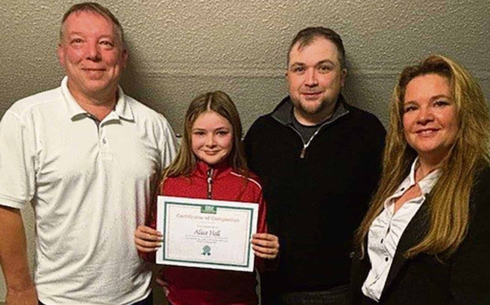 Alice Hall with Plassey junior organiser Glenn Carney, dad Ian, and Plassey owner Sarah Brookshaw.